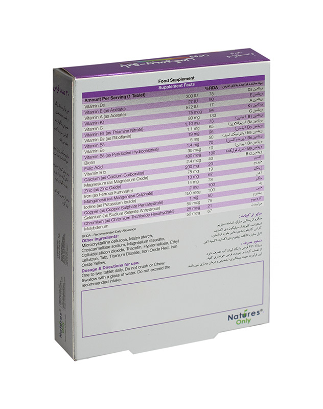 این مکمل مخصوص بانوان طراحی شده تا ویتامینها و مواد معدنی مورد نیاز بدنشان را تامین کند و سلامت عمومی، استخوانها، پوست و مو را بهبود بخشد. -